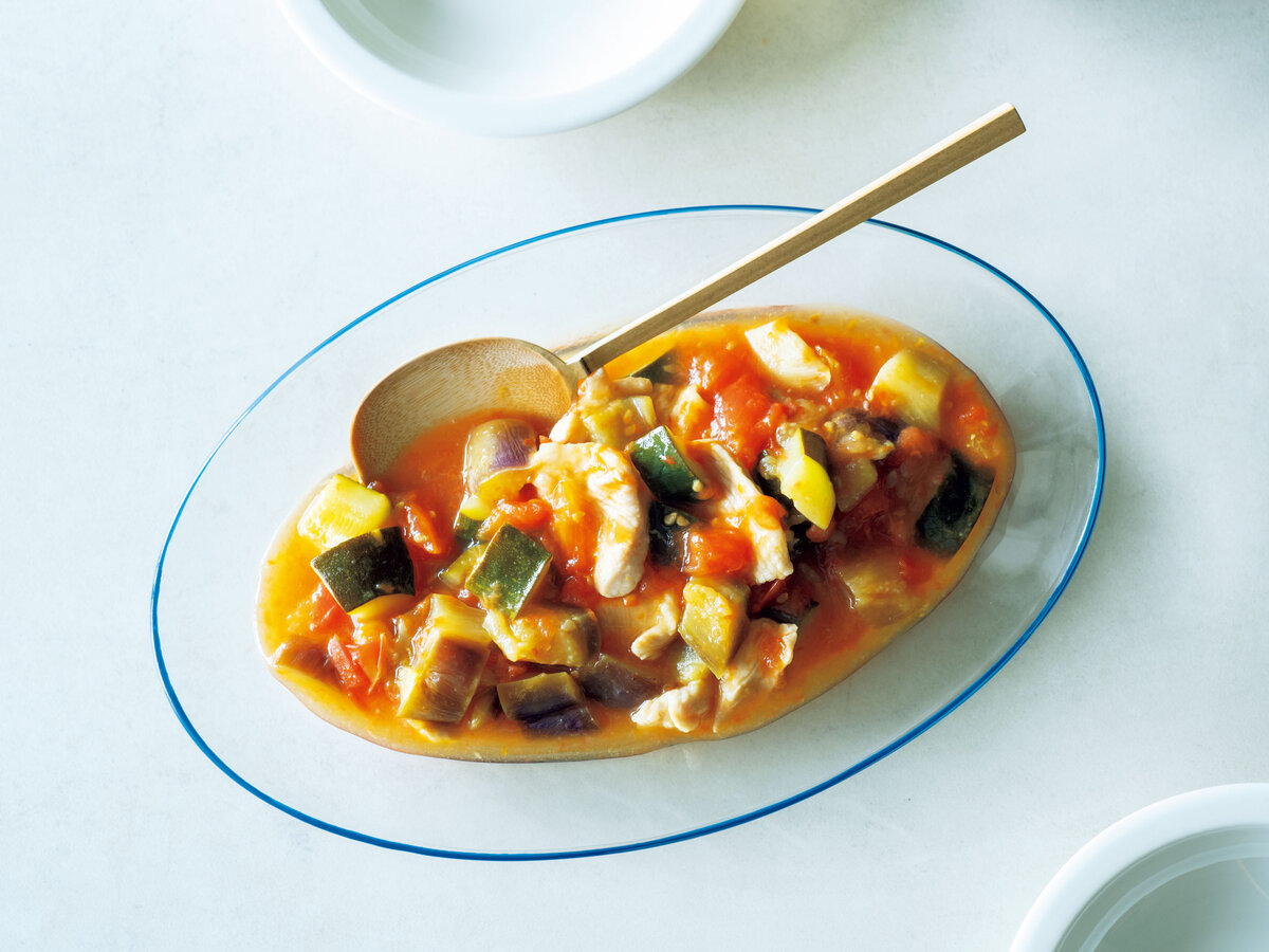 長谷川あかりさんの『梅チキンラタトゥイユ』のレシピ ノンオイル長谷川あかりのあたらしいきほんの料理オレンジページnet。