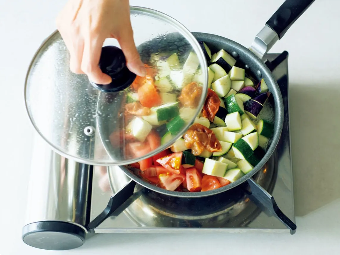 簡単美ごはんレシピ くすみ予防&アンチエイジングに♪「ノンオイル梅チキンラタトゥイユ」美的.com。