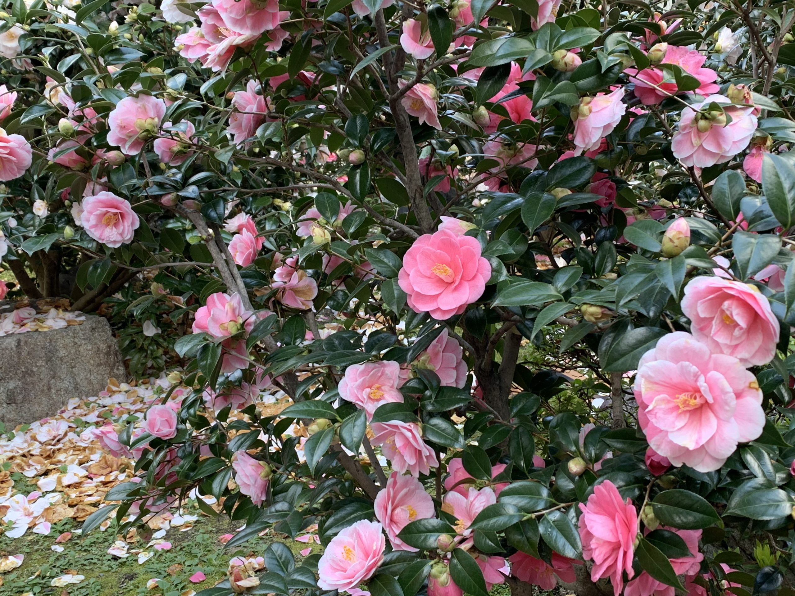 10April 八重の椿とクレマチス : 湘南のそよ風。