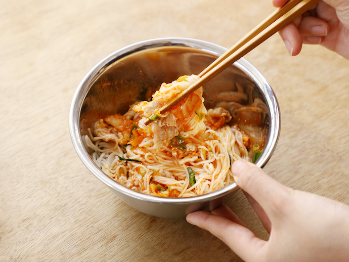 リュウジ食堂vol.23いつものそうめんをピリ辛アレンジ♪「豚キムチそうめん」読み物アマノフーズ公式ブランドサイト。