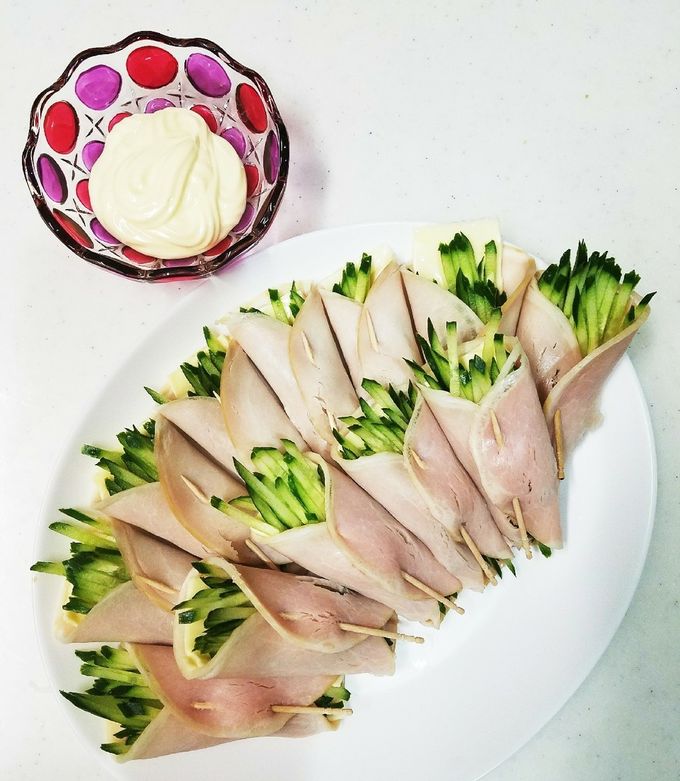 簡単なのにおしゃれ♪ きゅうりの一口くるくるロール。