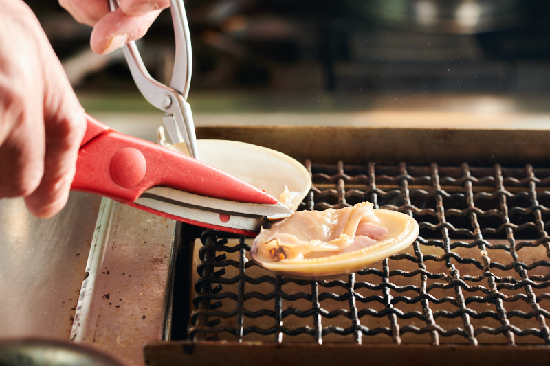 ハマグリの網焼きをより美味しく作るには? 汁を逃さない! くぅのおうち居酒屋。