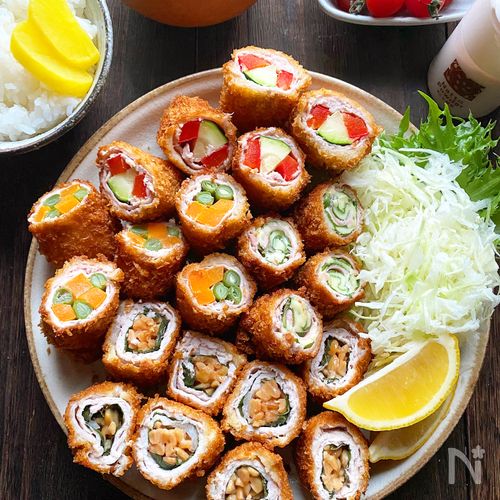 冷凍納豆で大葉納豆の肉巻きカツ 野菜肉巻きカツ付き。