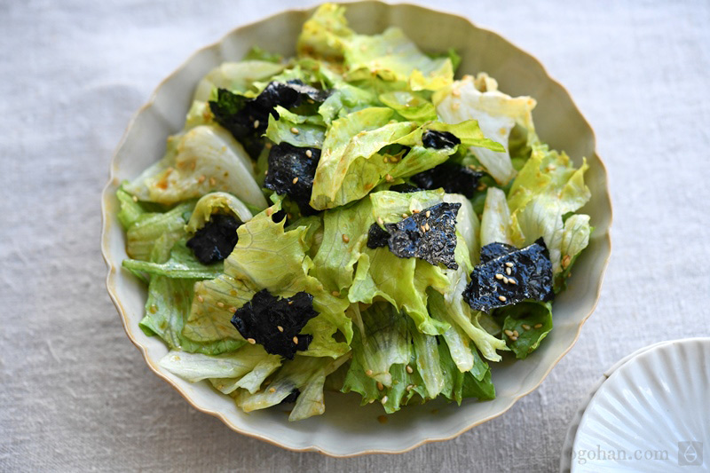 簡単!やみつきレタスサラダのレシピ 作り方:白ごはん.com。
