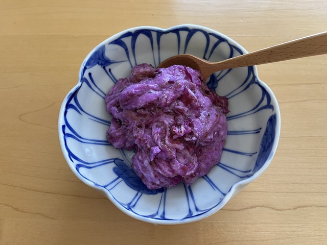家ごはん紫山芋 きれ~な紫色のとろろ♪ のはずがこぶた食堂*´ 00 `*。