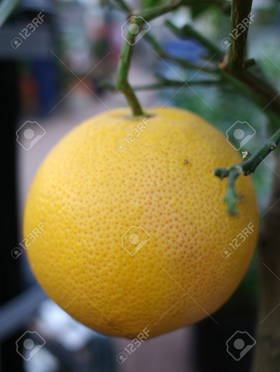 1つの大きな黄色い果物を持つ園芸用品センターの小さなザボンの木。この果物の他の名前は柑橘類のマキシマです。グレープフルーツの主要な祖先ですの写真素材・画像素材Image 198696321。