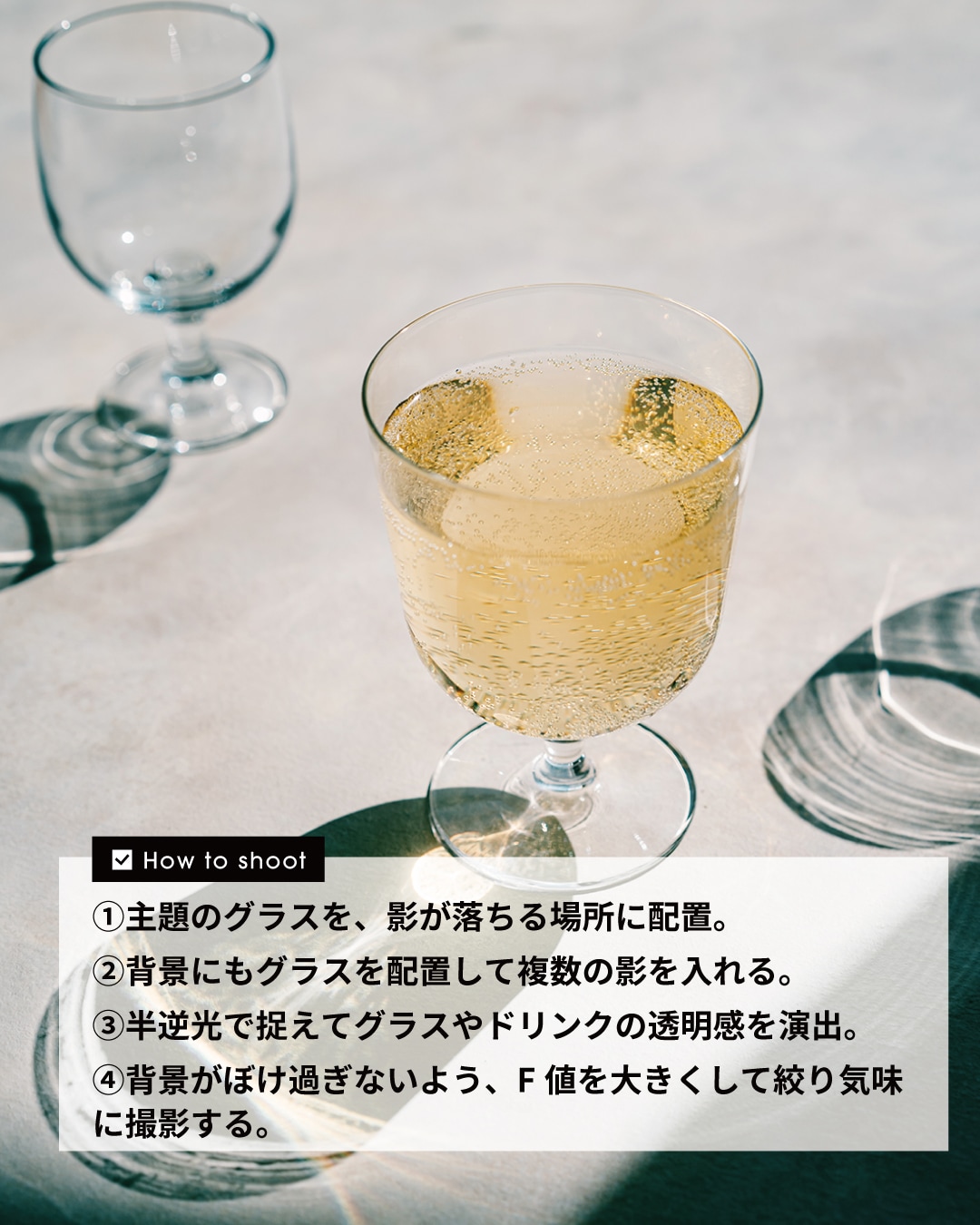 グラスの影を活かしたドリンクのおしゃれな撮り方綾's recipeαcafe 表現レシピ。