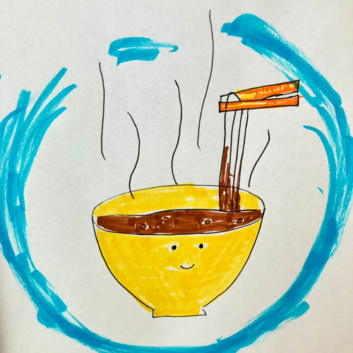 カレーうどん無料イラスト&かわいいフリー素材集 ねこ画伯コハクちゃん。