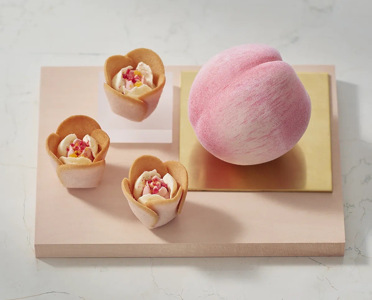3種の桃のスイーツが大阪・梅田「セバスチャン・ブイエ」に集合 - 赤桃、白桃、黄桃がケーキに - ファッションプレス。