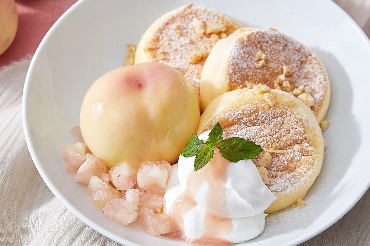 パンケーキカフェ「cafeblow」で桃フェアが開催中!テイクアウトメニューも♪ 大阪じゃらんニュース。