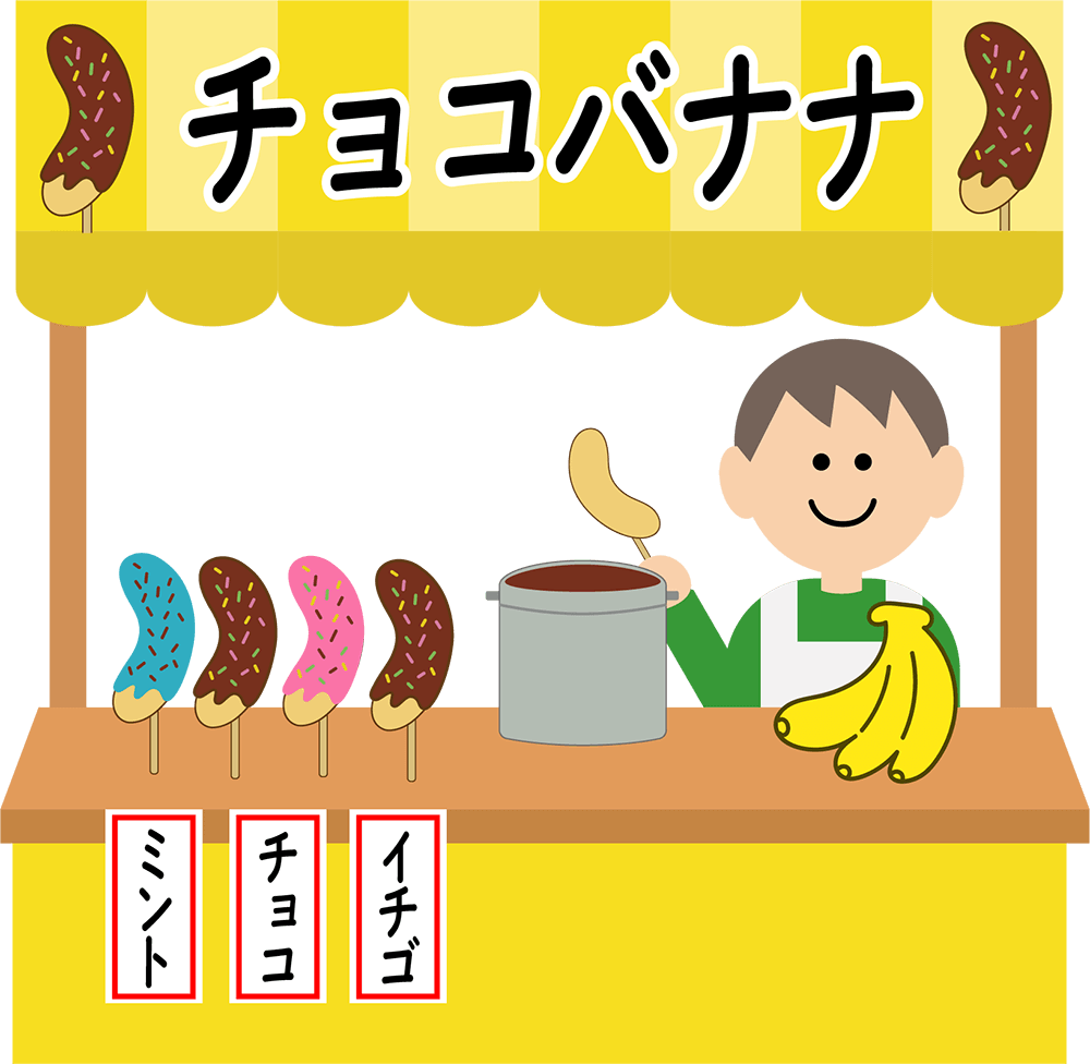 かわいいチョコバナナの屋台イラスト・フリー素材なら「シンテリ」。