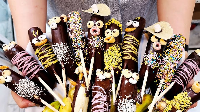 わくわく♪屋台のチョコバナナ「バナぞう君」Chocolate Covered Banana Pops - YouTube。