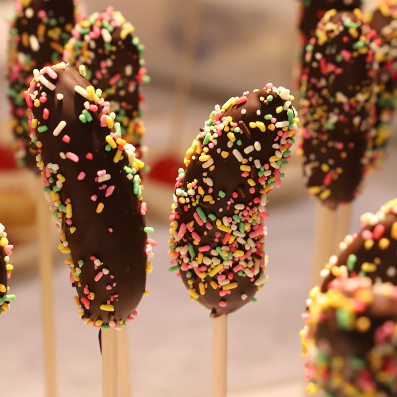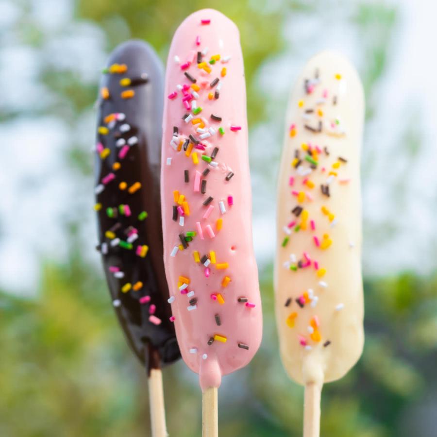 屋台のチョコバナナをおうちで♪「おうちで簡単チョコバナナ」ならパリッとキレイに作れますえんウチ。