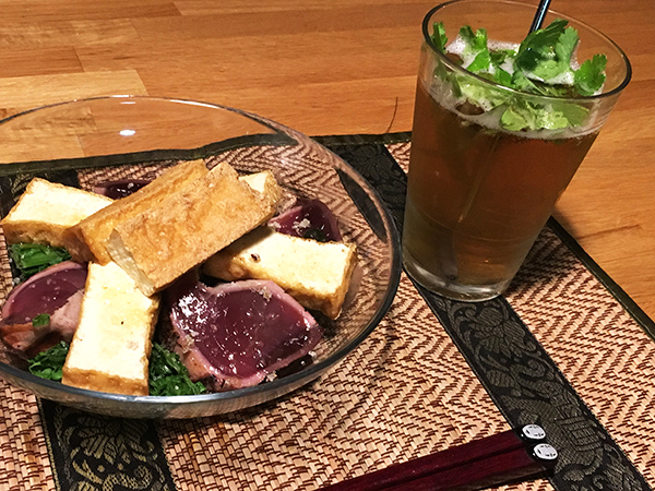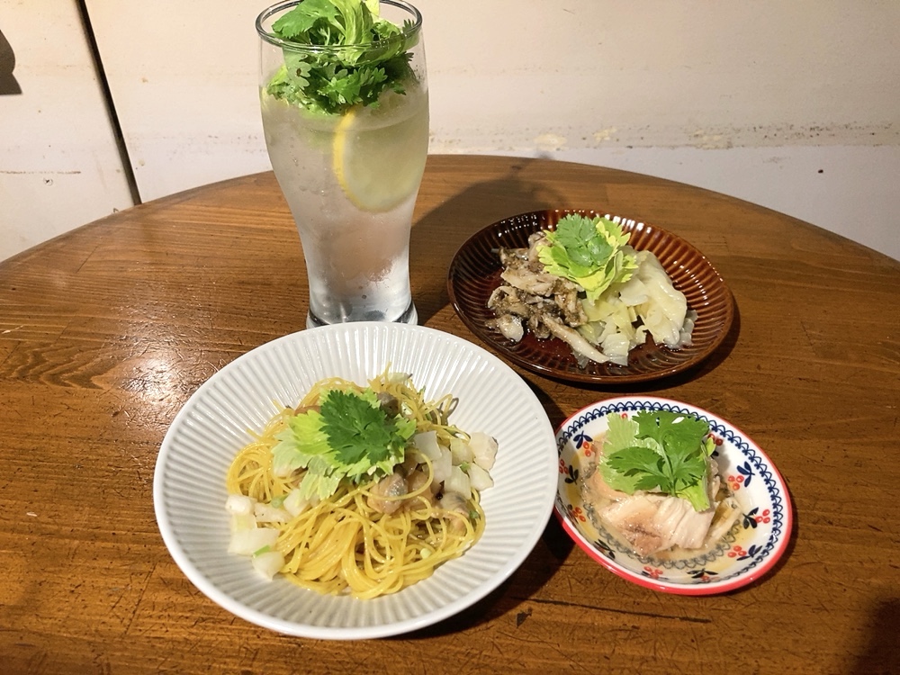 セロリとパクチーが入ったモヒート風チューハイと一品料理=北浜「セロリとパクチー」 - 船場経済新聞。