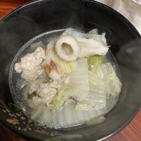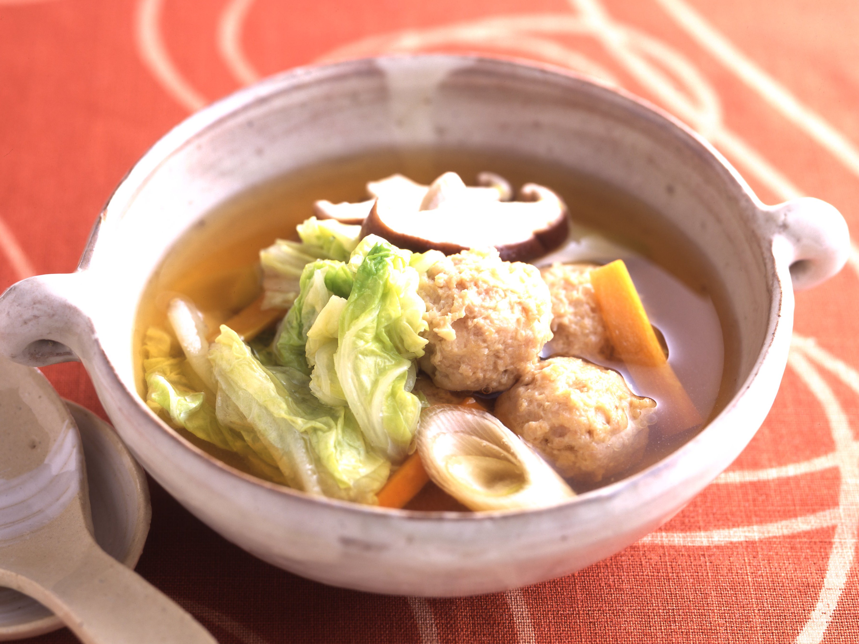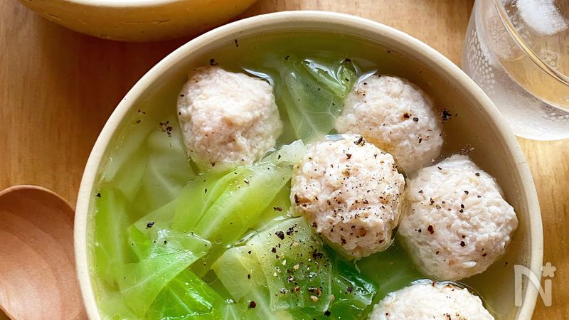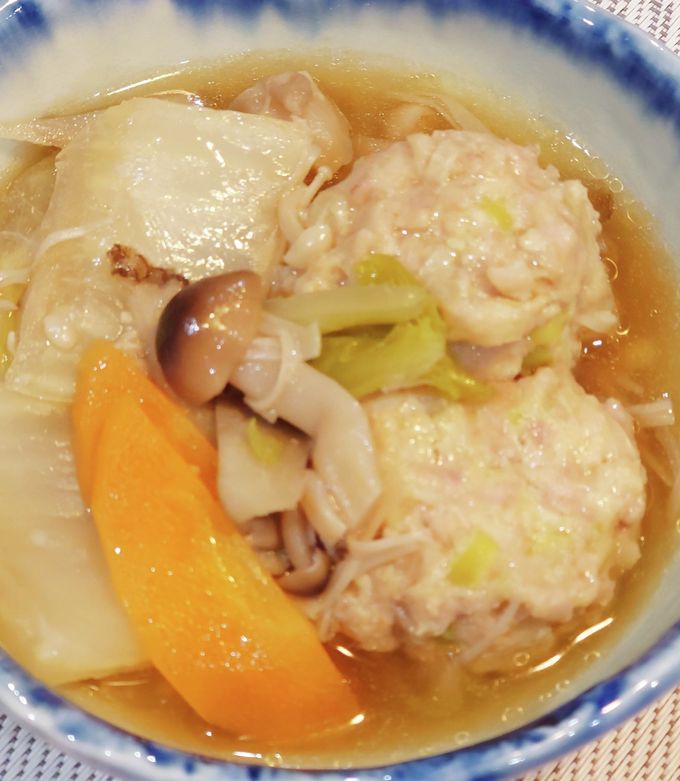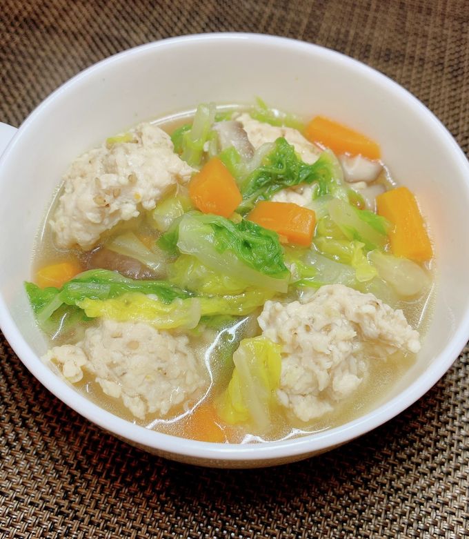 キャベツたっぷり鶏だんごのうま塩スープ。