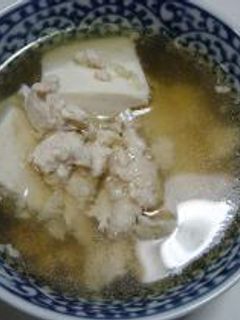 生姜の効いた包まない鶏ひき肉ワンタンスープ。