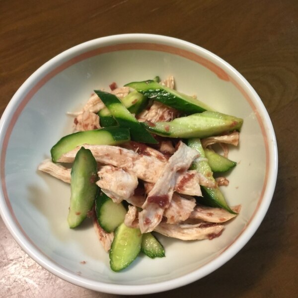 鶏むね肉と胡瓜のさっぱりうめ風味サラダ 火を使わず簡単。