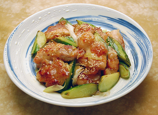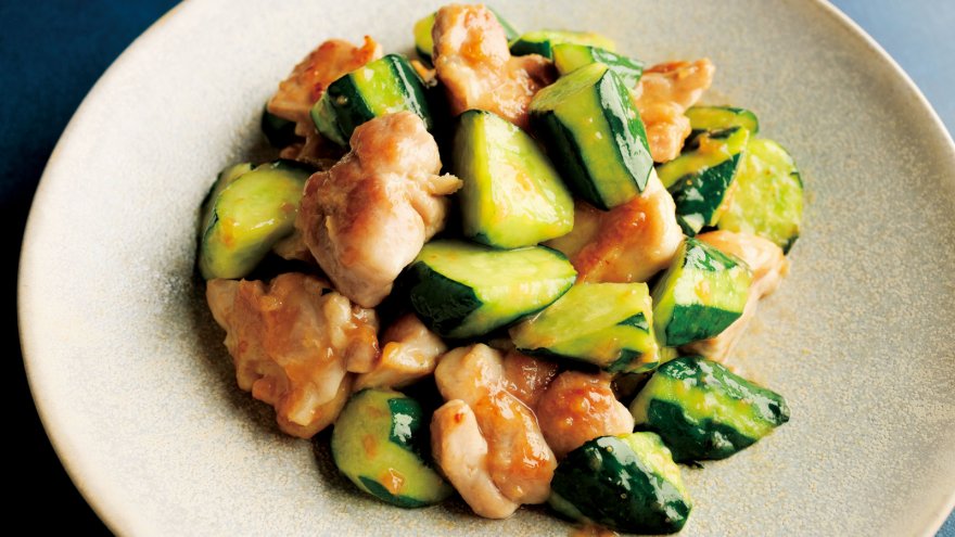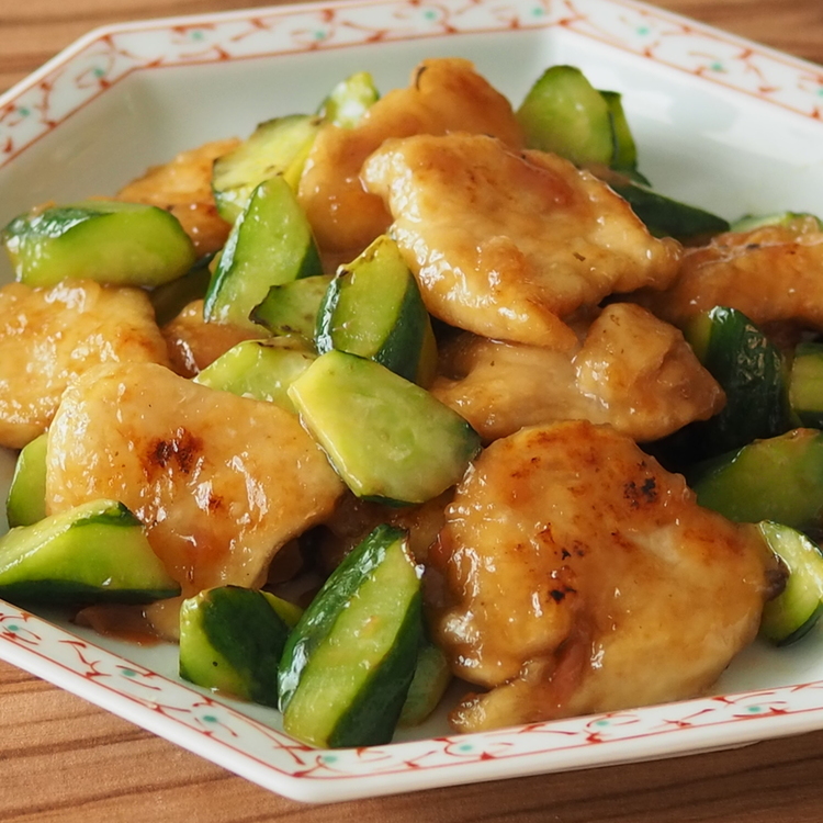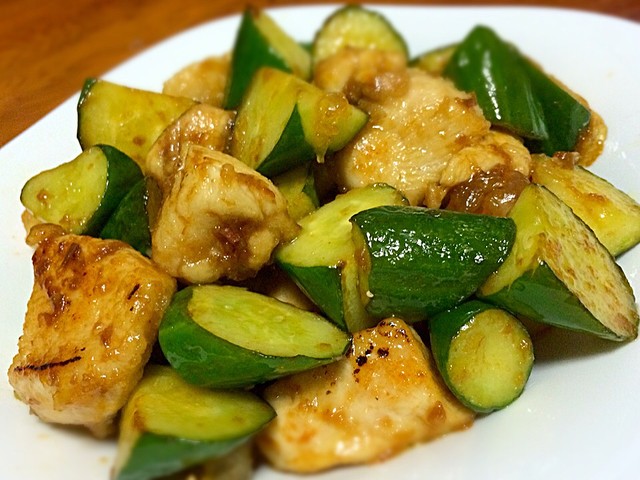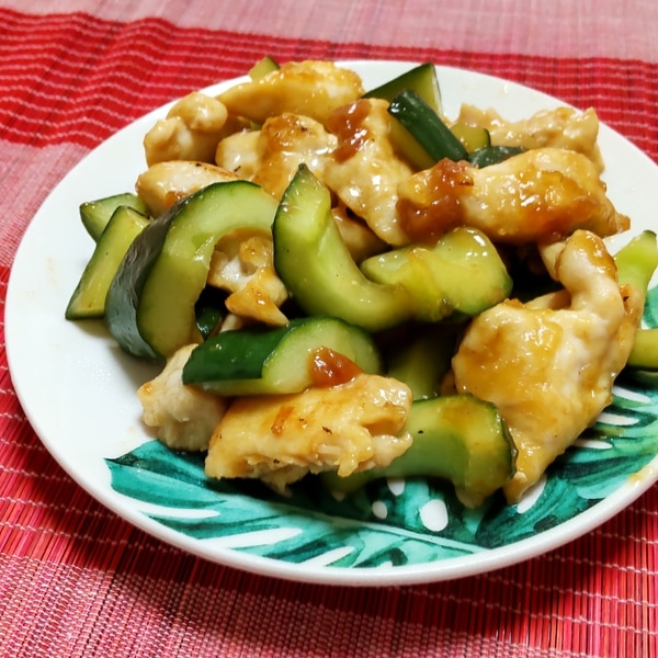梅でさっぱり♪鶏むねときゅうりの中華炒め。