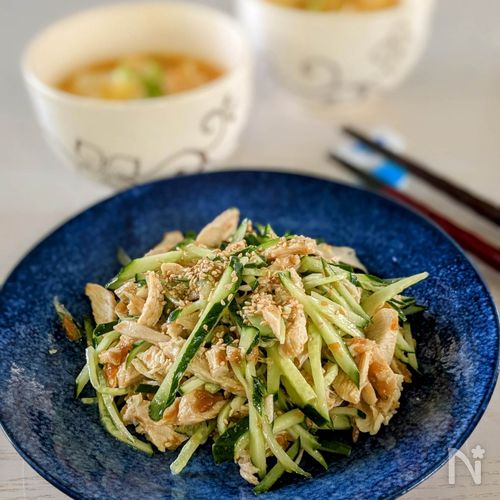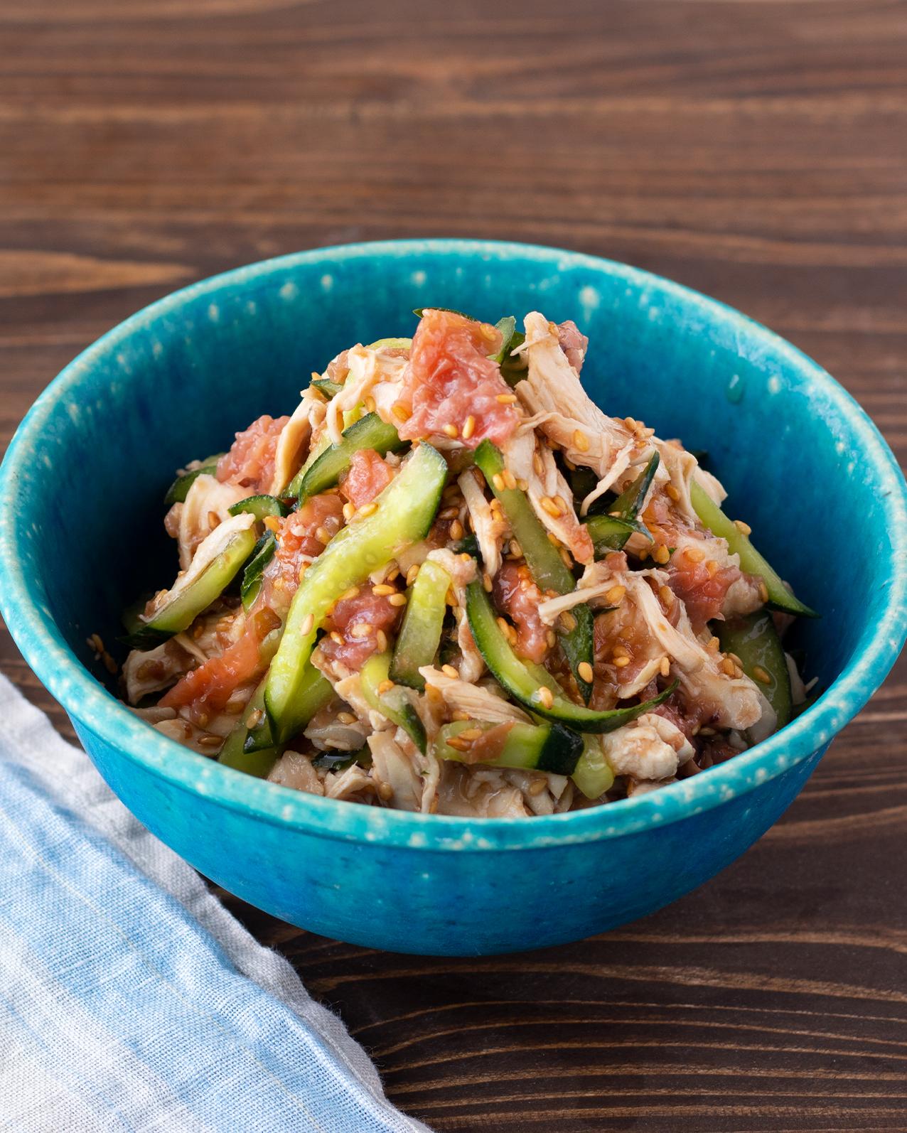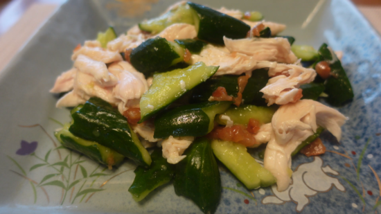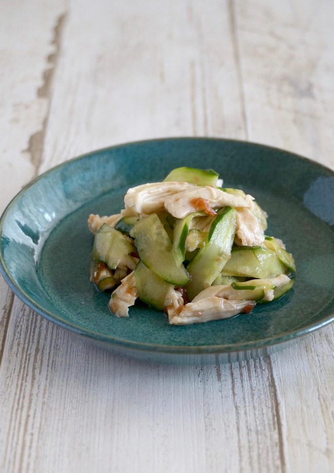 鶏肉ときゅうりのさっぱり梅ポン和え。