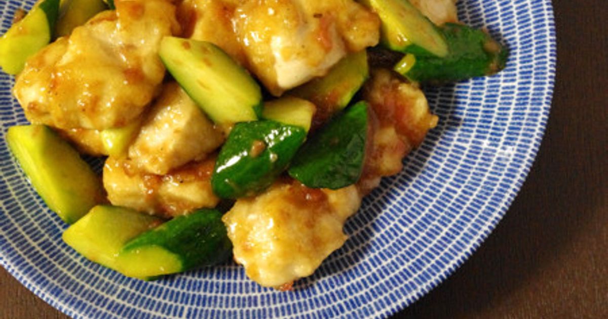 きゅうりと鶏むねの梅ぽん炒めのレシピトクバイ。