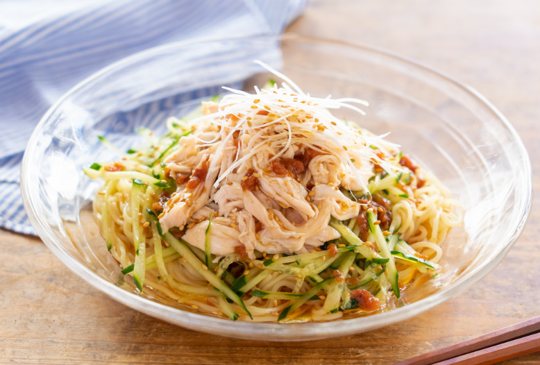 暑い日に!梅ささみきゅうりそうめん - おすすめレシピダイエー食の情報。