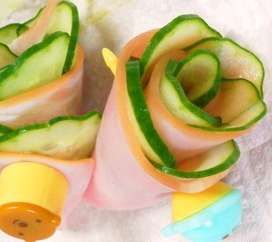 お弁当に!ハムきゅうりチーズのくるくる♪。