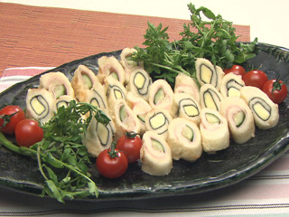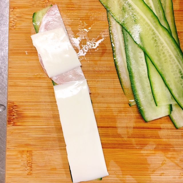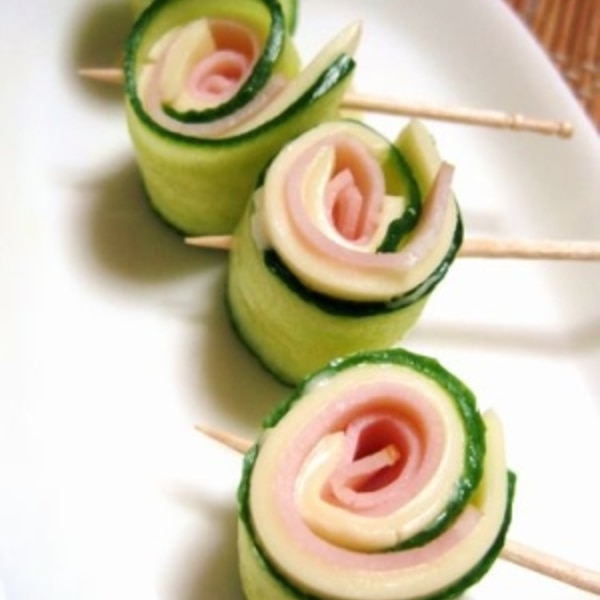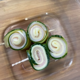 簡単きゅうりとハムとチーズのくるくる巻き。