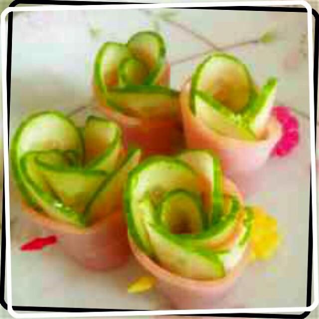 お花ハムきゅうり🌼 , @ayumi___tani さんの投稿をお借りしました😚, @ayumi___tani ←他の投稿はコチラ🌷,ハムとキュウリあったらコレ作って!, お弁当の隙間にピッタリで, 一気に華やかになる🌷, 3分で作れる、かわいいおかず!,⋆ ⋆,材料 , ハム 1枚, キュウリ 適量,作り方 , ①キュウリを薄〜くスライスする。,。