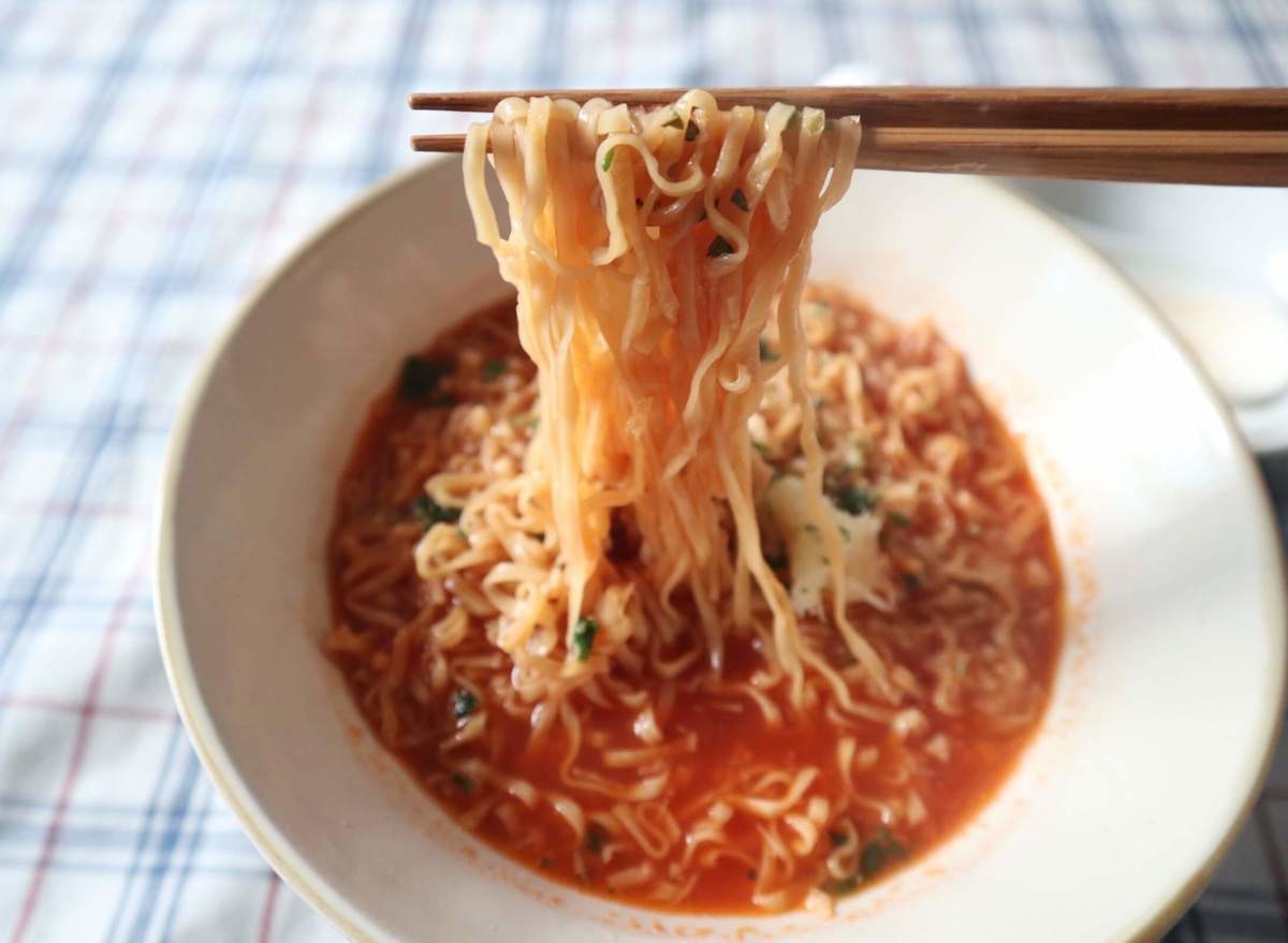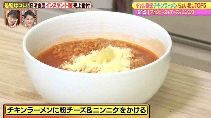 いきなりお湯入れないで!? ”にんにくトマトチキンラーメン”最強ウマい食べ方 ギャル曾根さん大絶賛!衝撃アレンジヨムーノ。