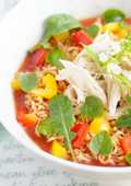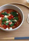 トマトジュースで作るチキンラーメンeフレンズ ぱくぱく献立くん。