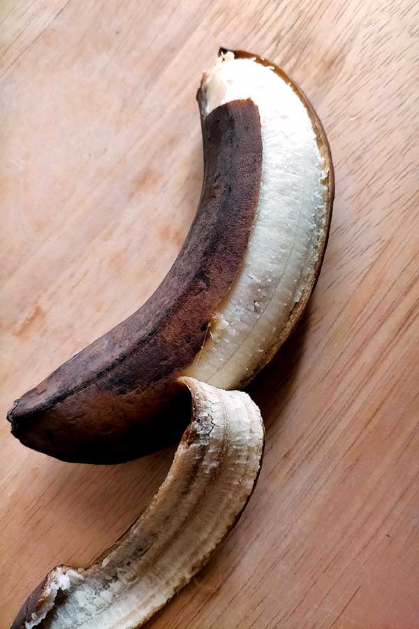 冷蔵庫に長い間保存しておいて忘れてしまった! 完全に真っ黒になったバナナ@さて~中身は大丈夫やろか。