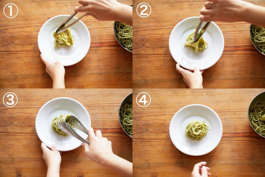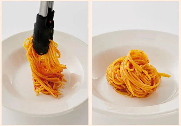 パスタの盛り方 トングだけで簡単に高く盛れます。これだけでさらに美味しく見えるんです。