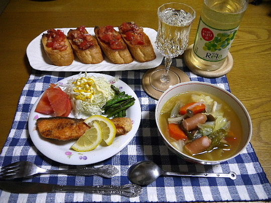 夕食 鮭のムニエル・ポトフ・ブルスケッタ: THE LAST SASURAI ~自炊ニストの食卓~。