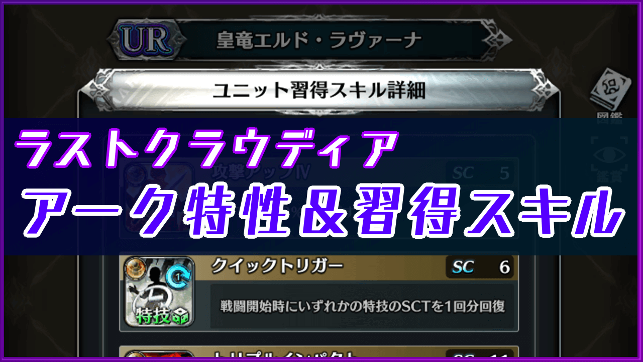 ラスクラ:アーク特性&習得スキル一覧ラングの屋根裏部屋。