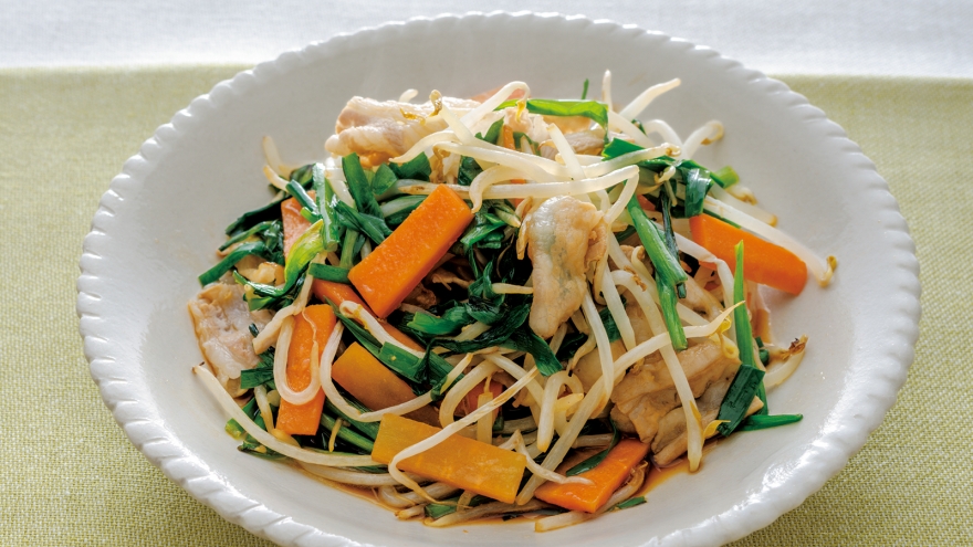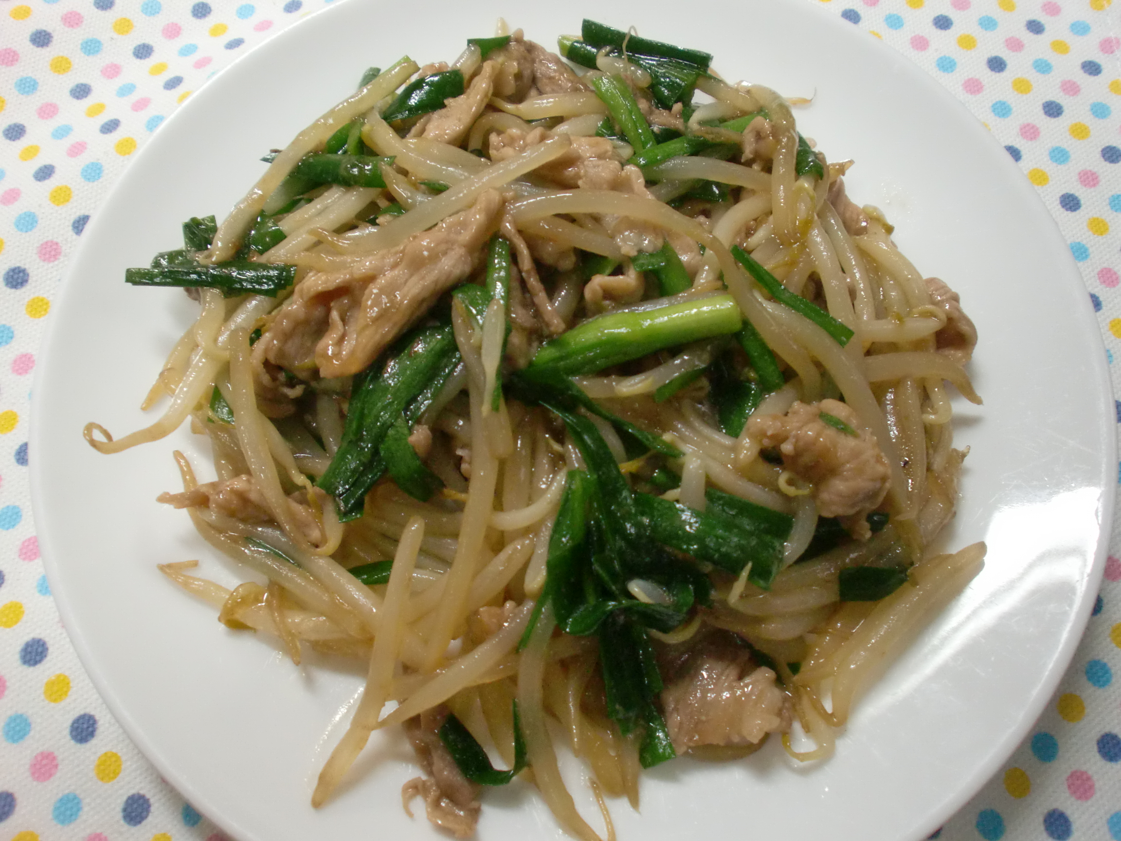 豚ニラもやし炒め。