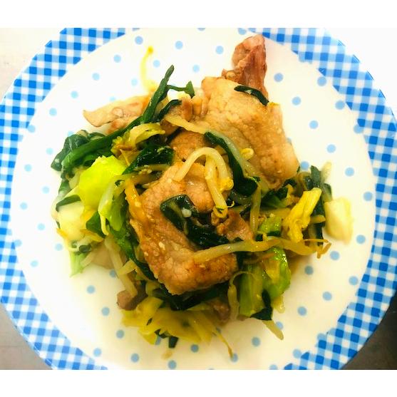 豚こまとニラもやし炒め。