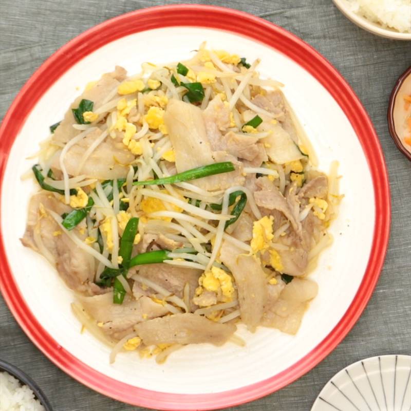 もやしとニラの豚肉卵塩炒めのレシピ。味付けは塩胡椒と鰹節だけ! - LIFE.net。