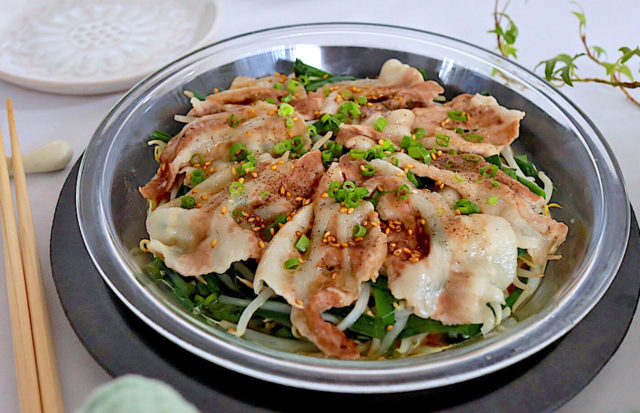 ニラともやしの豚しゃぶ巻き旨だれがけ。