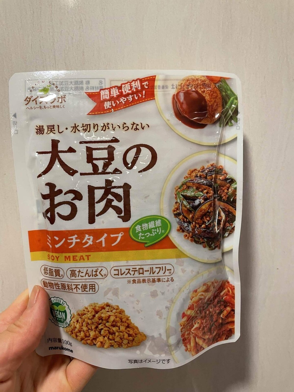マミ ハチ公大豆ミートの麻婆豆腐🫶 スーパーで売ってるもどしてある大豆ミートは使いやすい✨ 細かい椎茸入れると味にボリュームでるかも✨ベジタリアン大豆ミート麻婆豆腐Instagram。