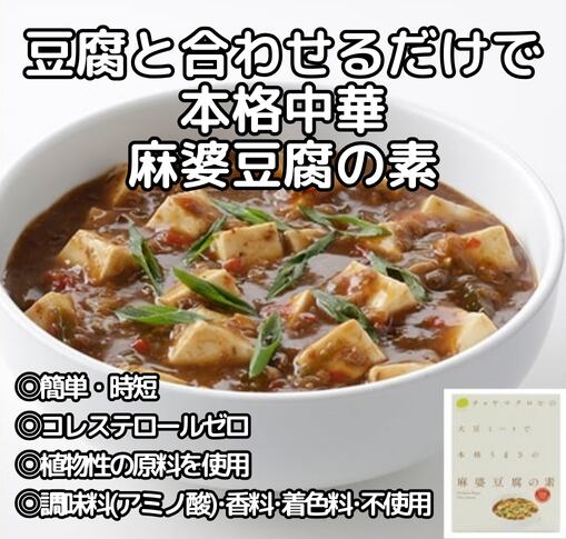 大豆ミートで 本格うまさの 麻婆豆腐の素 1食分150g <豆腐と合わせるだけで本格中華>◎植物性の原料を使用◎調味料 アミノ酸 ・香料・着色料不使用 ◎コレステロールゼロ ◎簡単・時短公式 チャヤ マクロビオティックス 通販サイト。