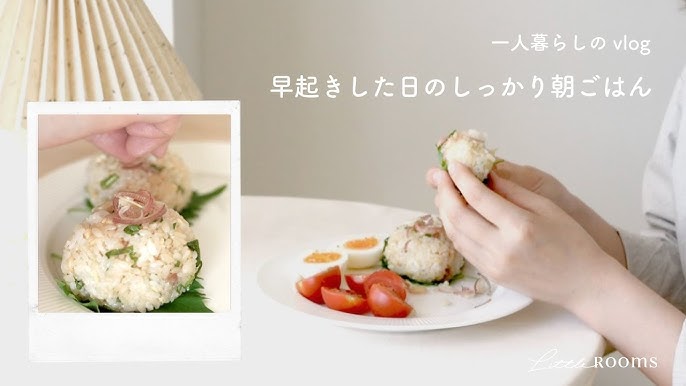vlog 早起きした夏の終わり、おにぎりを食べて出勤する一人暮らし料理 簡単レシピ 朝ごはん ワンプレート。