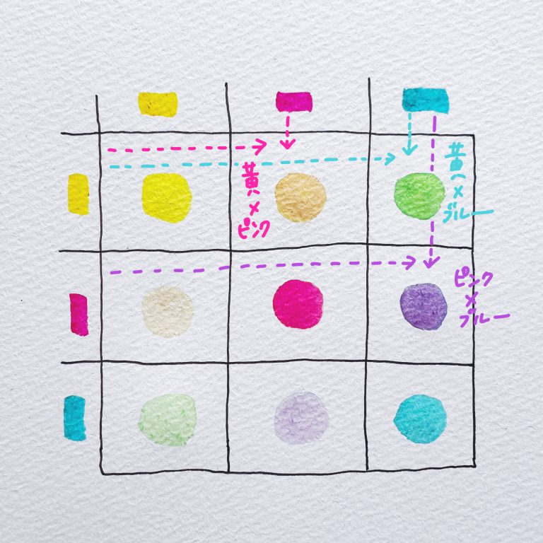 油絵具の混色方法と色の作り方。初心者でも三色+白だけで色を作れます。 – あのアトリエ。