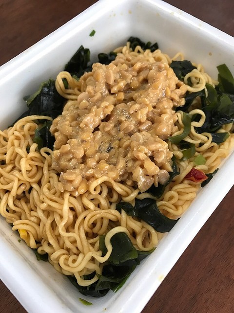 うわぁ、ワカメたっぷりだよ。この納豆。しかも、わかめの旨みが豆に移ってるのかな。かなり美味いのだよ、この納豆。 : 七転納豆。
