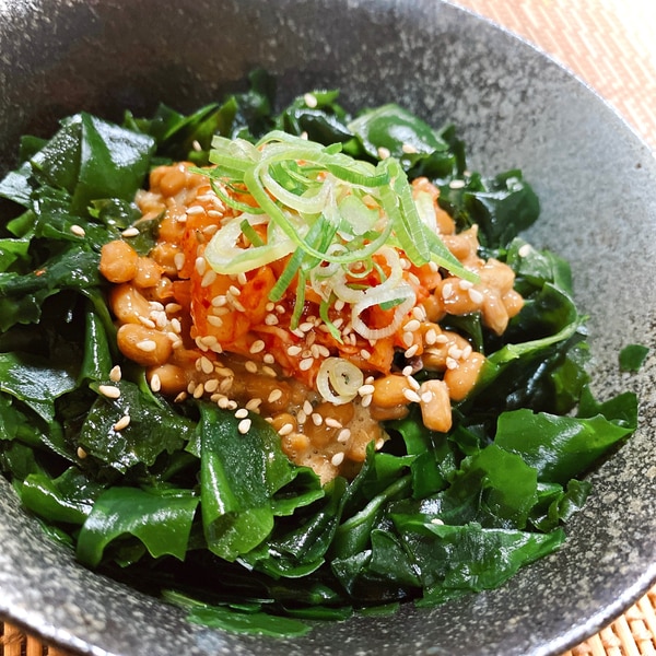 おなか喜ぶ♪わかめと納豆キムチ和え。