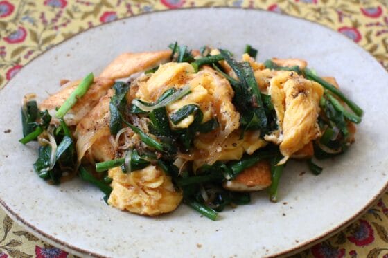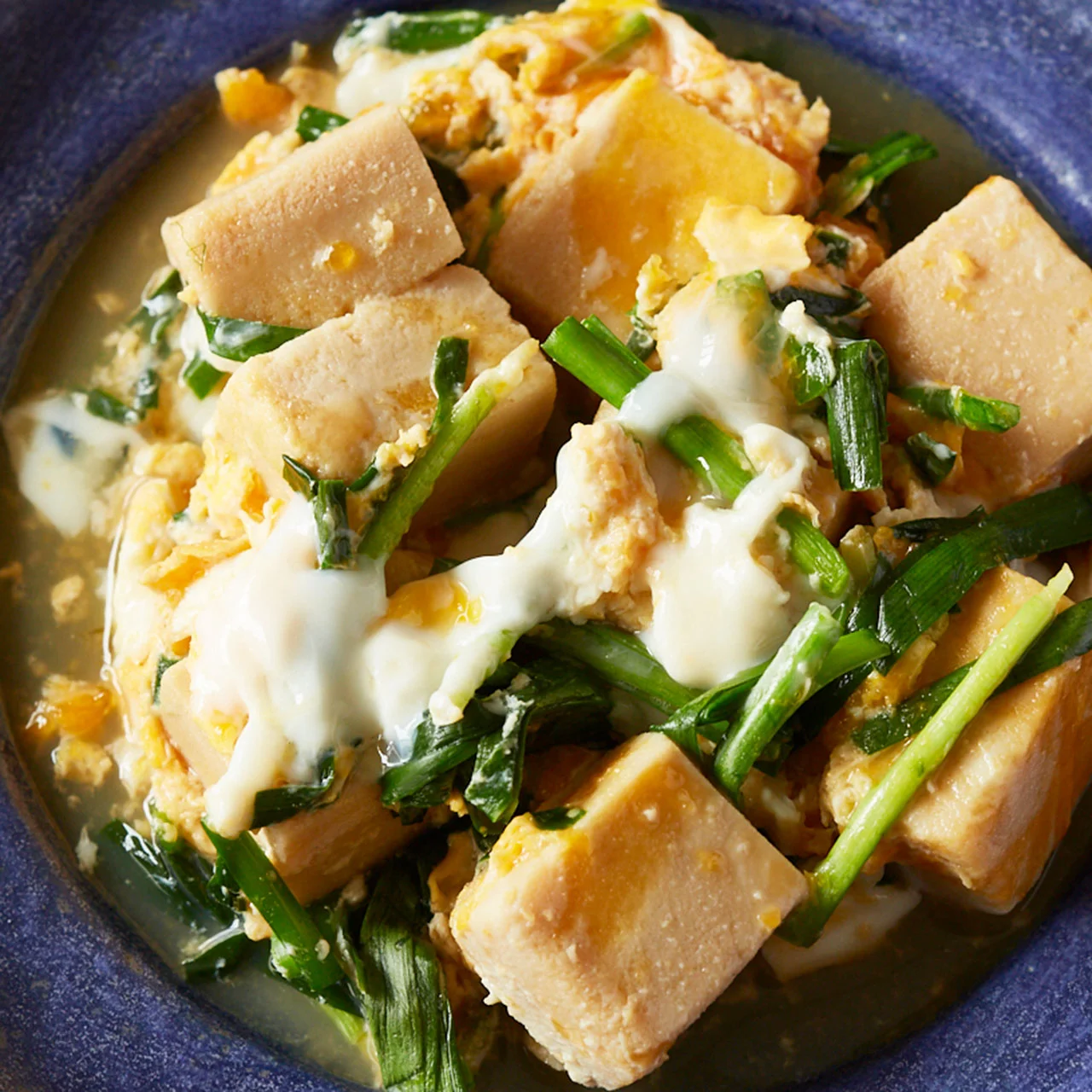 ふんわり絶品「ニラと豆腐の卵とじ」のレシピ・作り方。