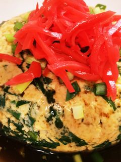 レンジで簡単!ほんだし豆腐ニラ玉丼。