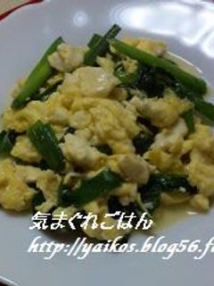 甘辛味がたまらない♪ ニラと豆腐の卵とじ。