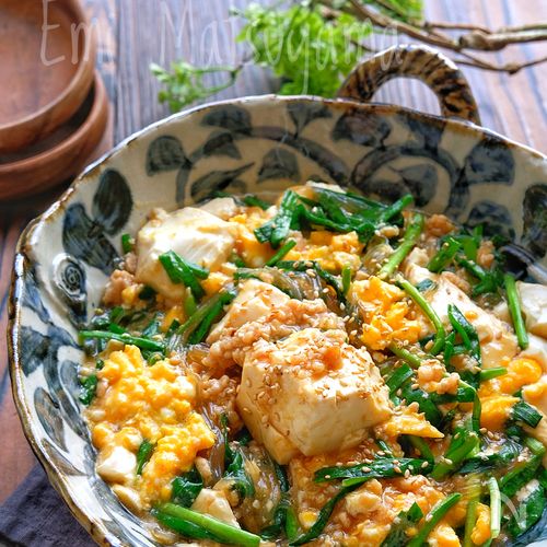 中華風ニラ玉豆腐卵とじ ニラと豆腐と卵で!メインおかずにピッタリ♪卵の加熱時間がポイントmacaroni マカロニ- YouTube。