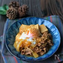 甘辛味の♪ ニラと豆腐の卵とじ丼。