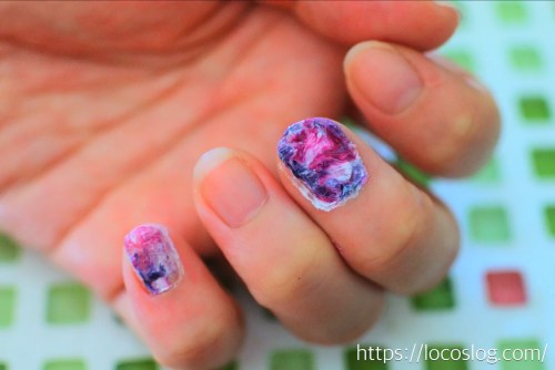 100均 梅雨ネイル クッキングシートで改善の余地ありマーブルネイルを作りましたLOCOの簡単セルフネイル。